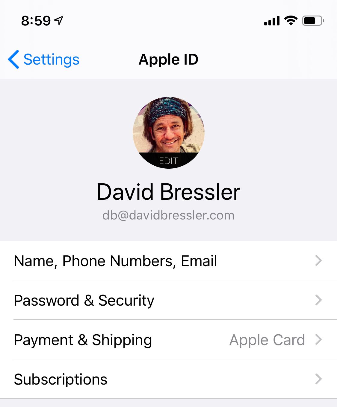 You'll find subscriptions in the Settings App under the signed-in user AppleID info (figure 1):