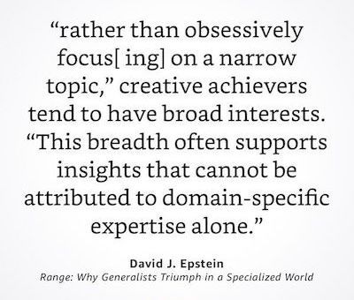 I saw this quote from Range and thought it appropriate to understand how I approach learning and doing: