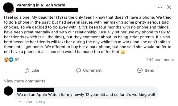 I still pay attention to the parenting forums, and to be clear, for some time now Watch has worked independent of a phone, though it's setup as part of a family plan and the adult phone manages the configuration and permissions. This is a big step forward, and in the forums that I read, seems like a good interim step between no phone (or no smartphone) and a smartphone.