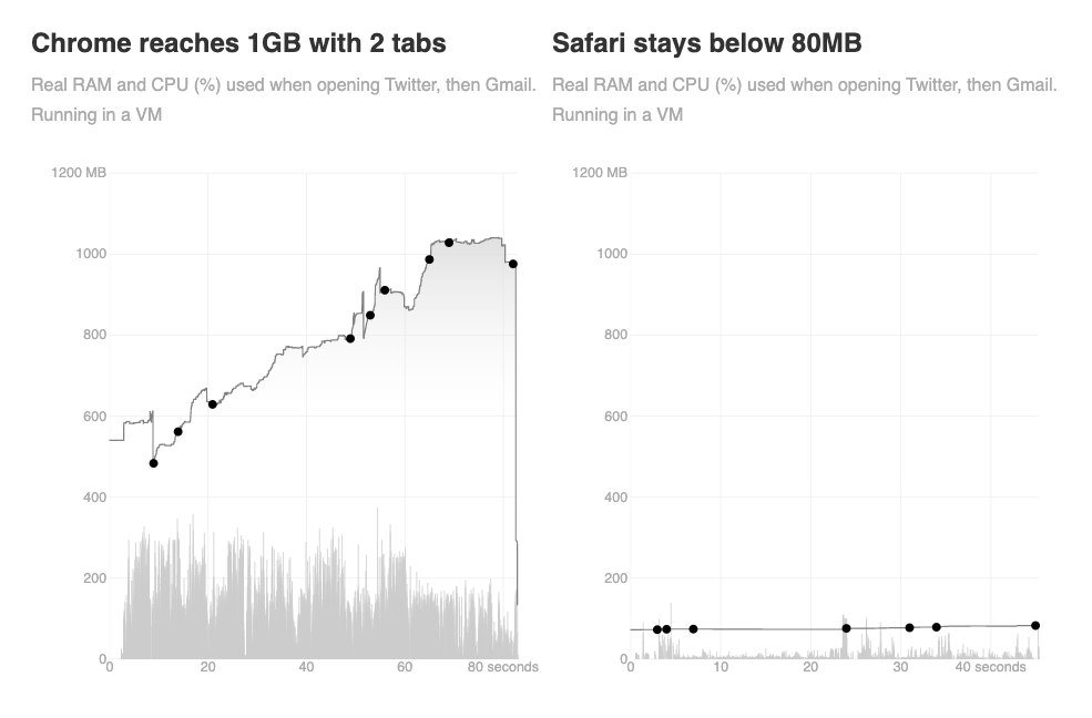 That said, I've found some proof that I'm right, that Chrome's performance compared to Safari is awful. I want to preserve it somewhere I can find it again so that when someone asks me to use Chrome, I can just send them to this post.