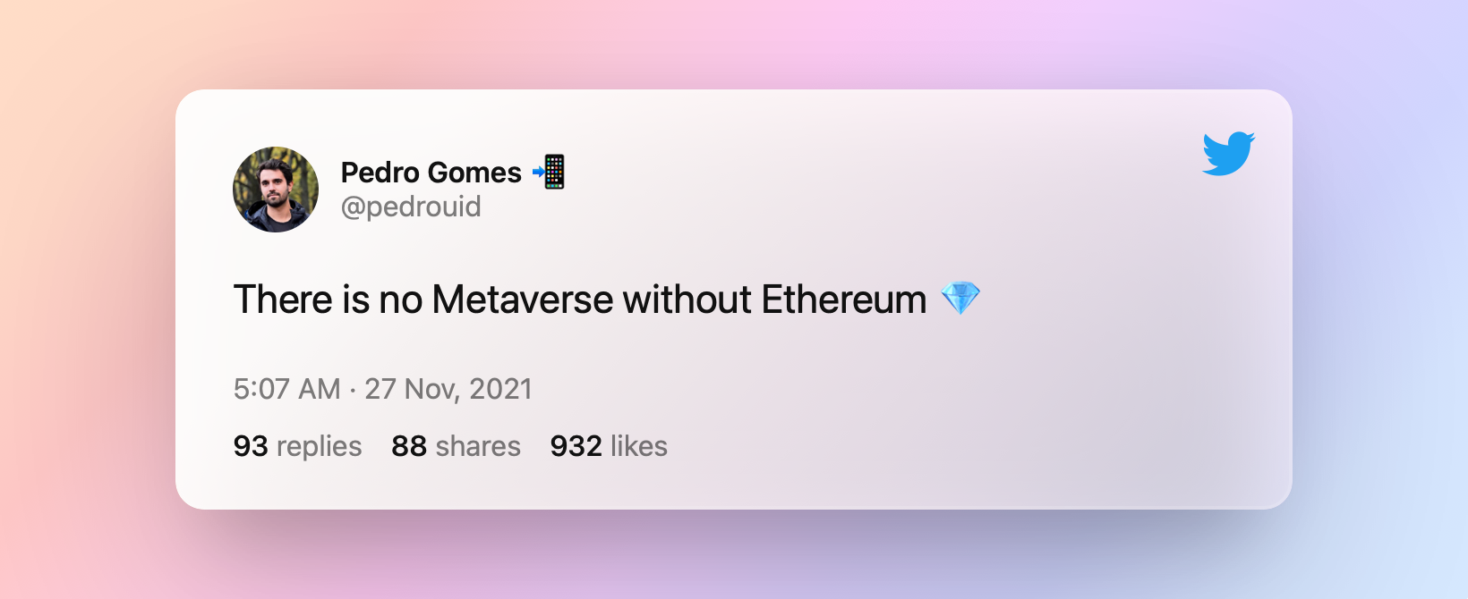 Well, in that case, wouldn’t every company / human that wants to participate in the Metaverse need to put ETH (among other things) on their balance sheet?