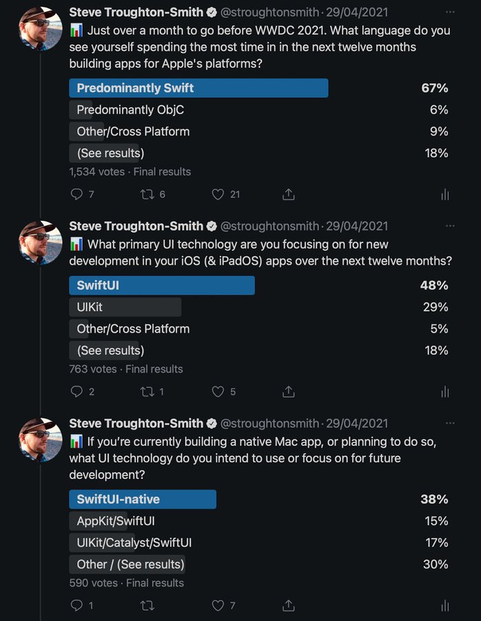 Which then makes this poll from a popular Apple developer valueable to understand: